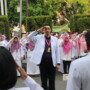 Para Dokter rela ‘banting stir’ menjadi petugas apel pagi untuk menyambut hari ulang tahun Ikatan Dokter Indonesia (IDI) ke 69 yang jatuh pada 24 Oktober setiap tahunnya.